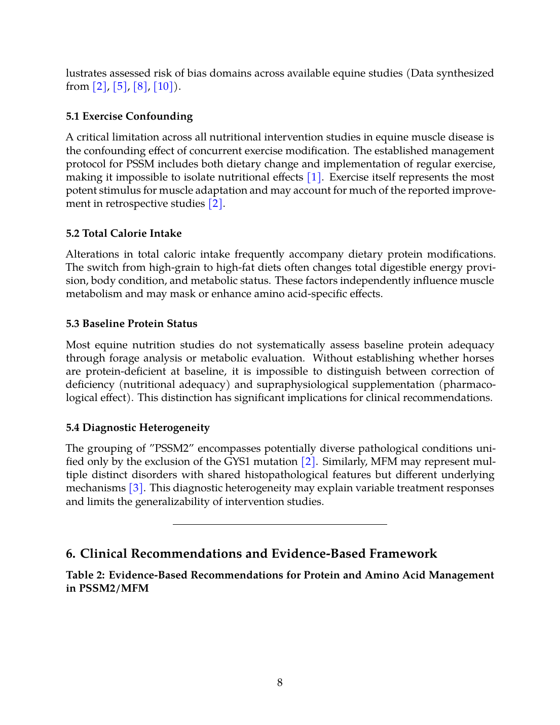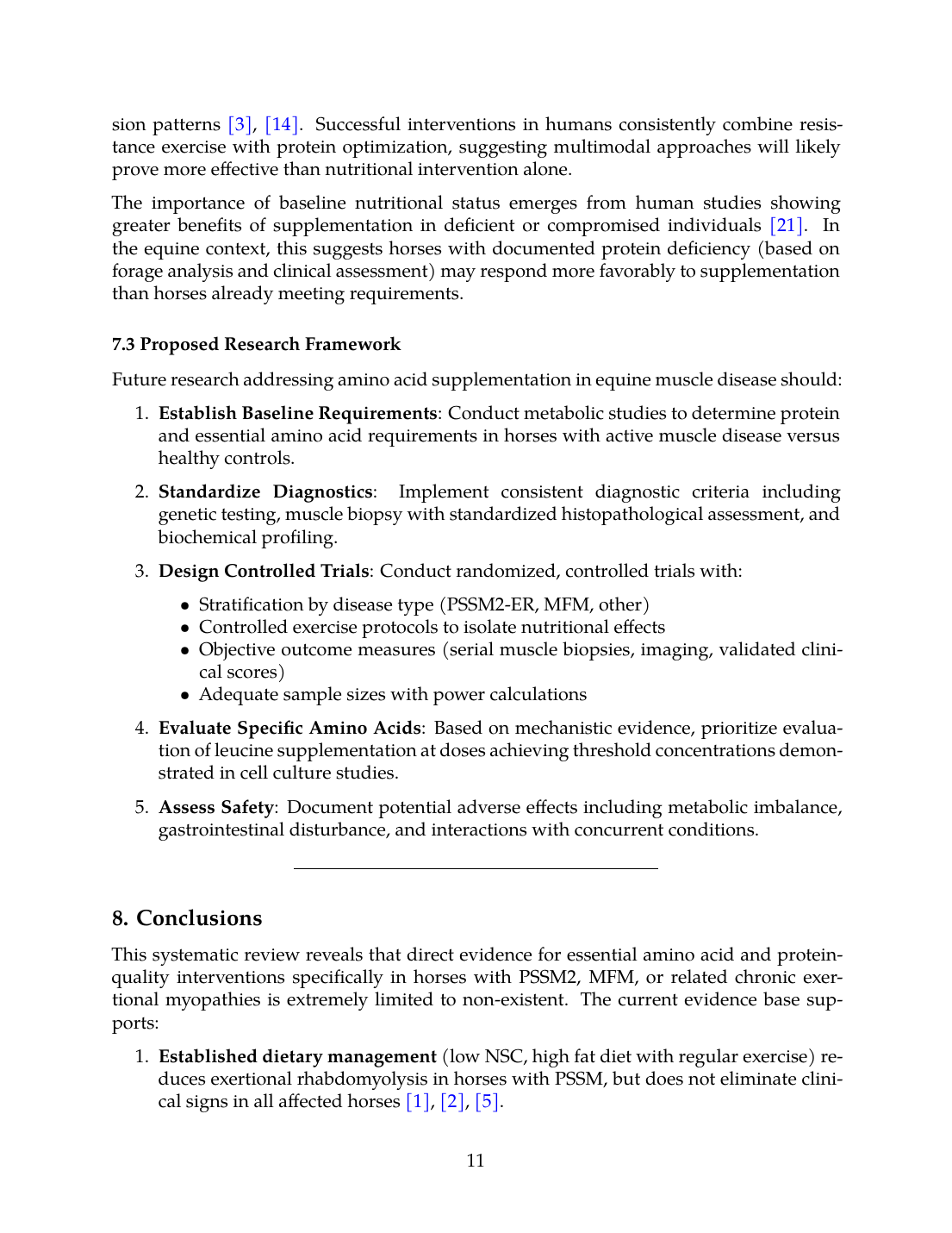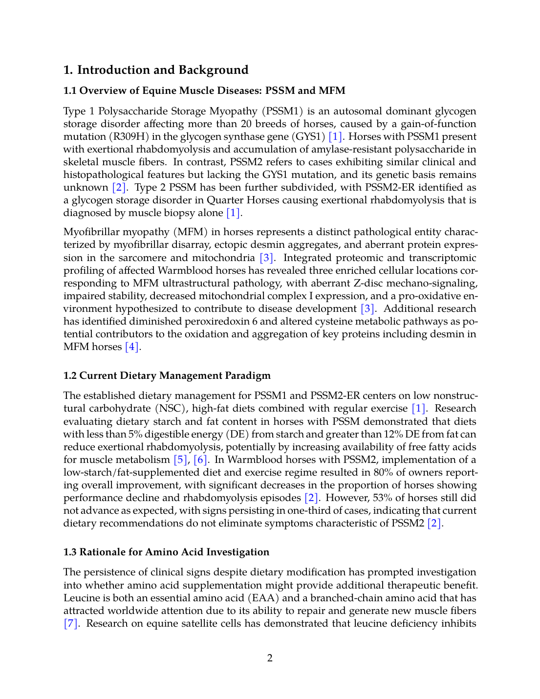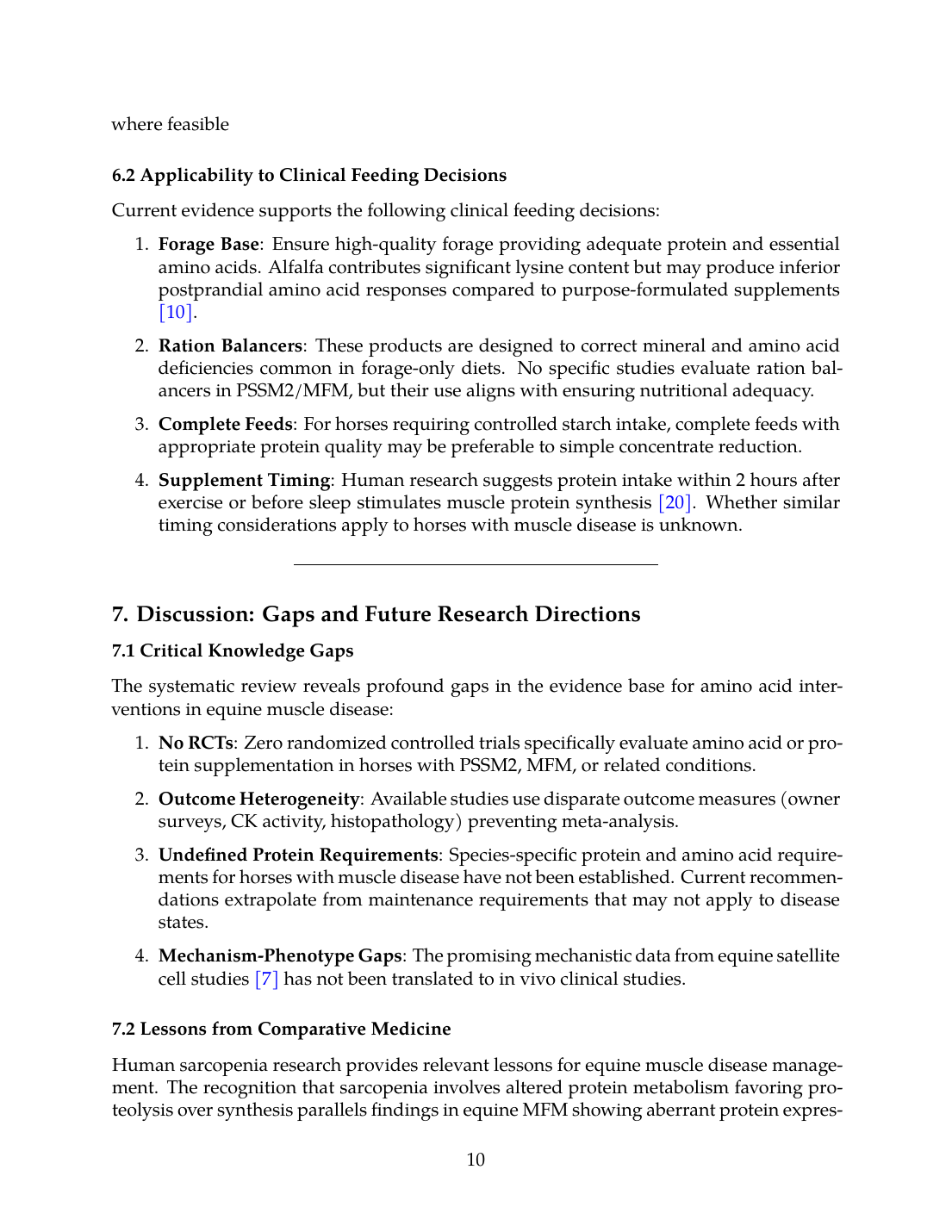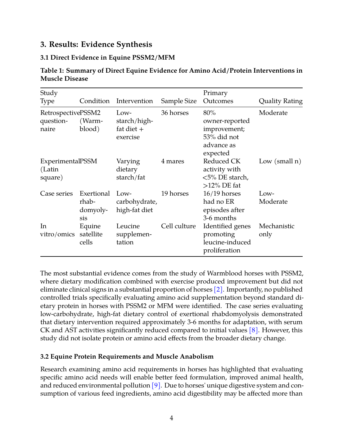 - No RCTs: Zero randomized controlled trials specifically evaluate amino acid or protein supplementation in horses with PSSM2, MFM, or related conditions.