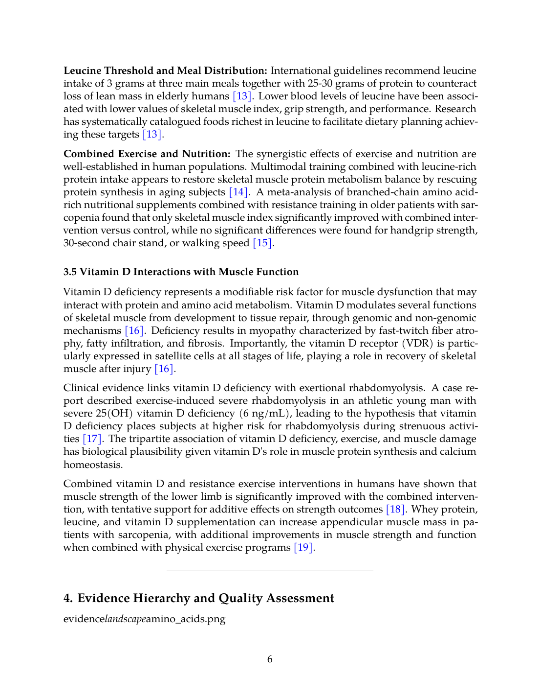 - Human sarcopenia research demonstrates that combined protein optimization (particularly leucine-rich, high-quality protein), vitamin D sufficiency, and resistance exercise improves muscle outcomes in aging and disease states [12],[11],[19].