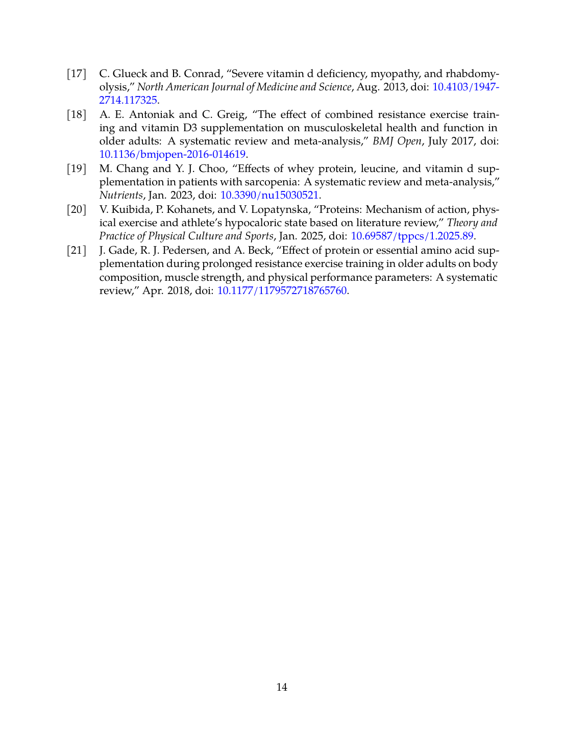 - A. E. Antoniak and C. Greig, “The effect of combined resistance exercise training and vitamin D3 supplementation on musculoskeletal health and function in older adults: a systematic review and meta-analysis,” BMJ Open, Jul. 2017. doi: 10.1136/bmjopen-2016-014619. View source