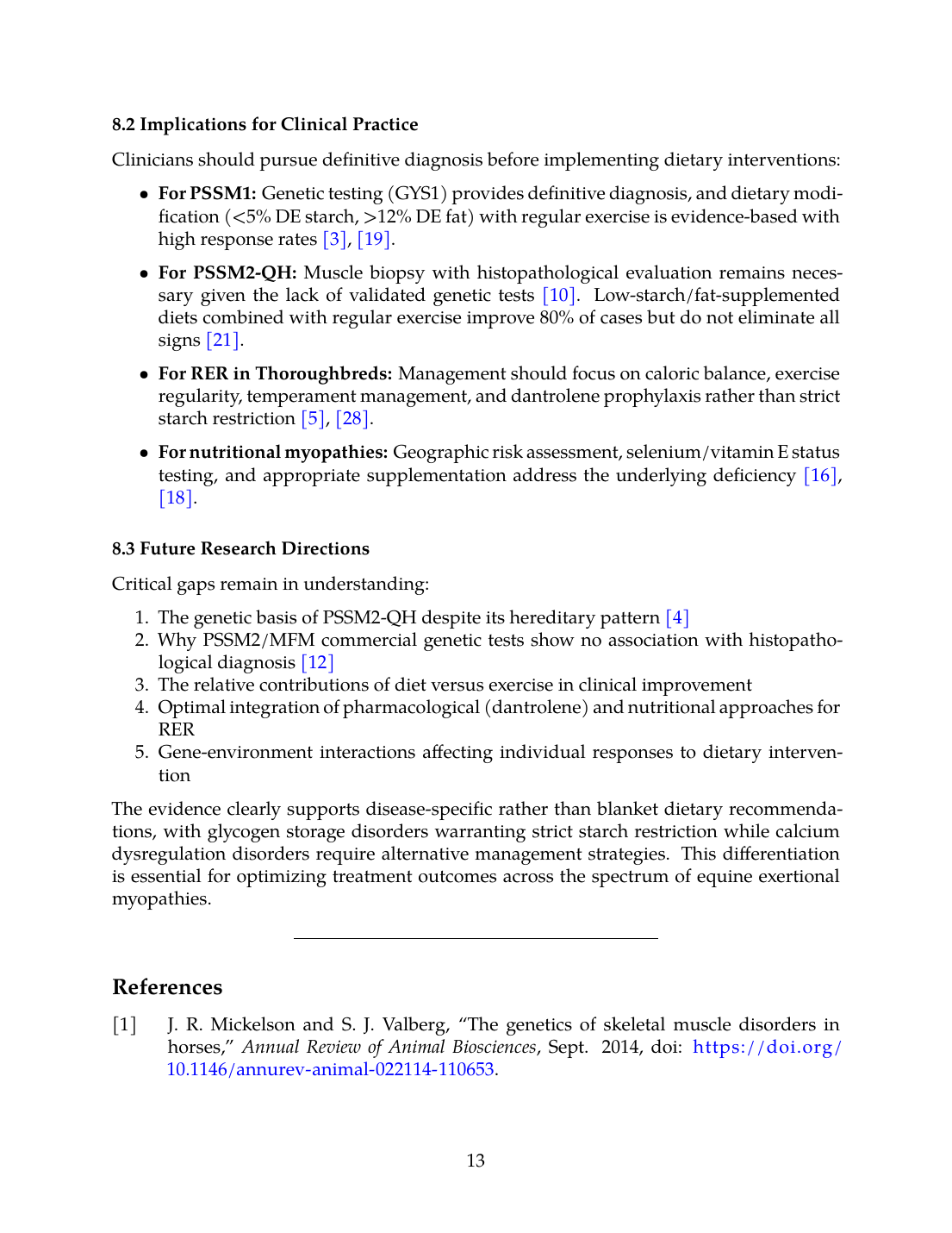 1. PSSM2/MFM in Warmbloods lacks validated diagnostic testing; commercial genetic tests do not correspond to histopathological diagnosis [12], complicating treatment targeting.