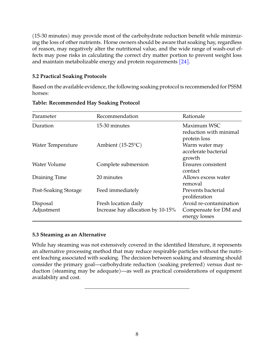 Table: Recommended Hay Soaking Protocol