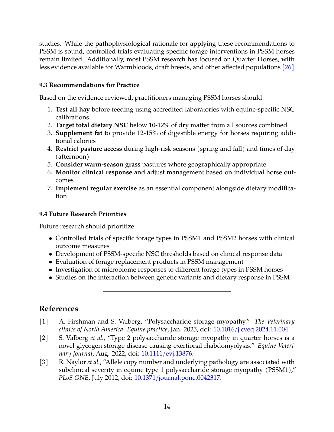 - Controlled trials of specific forage types in PSSM1 and PSSM2 horses with clinical outcome measures