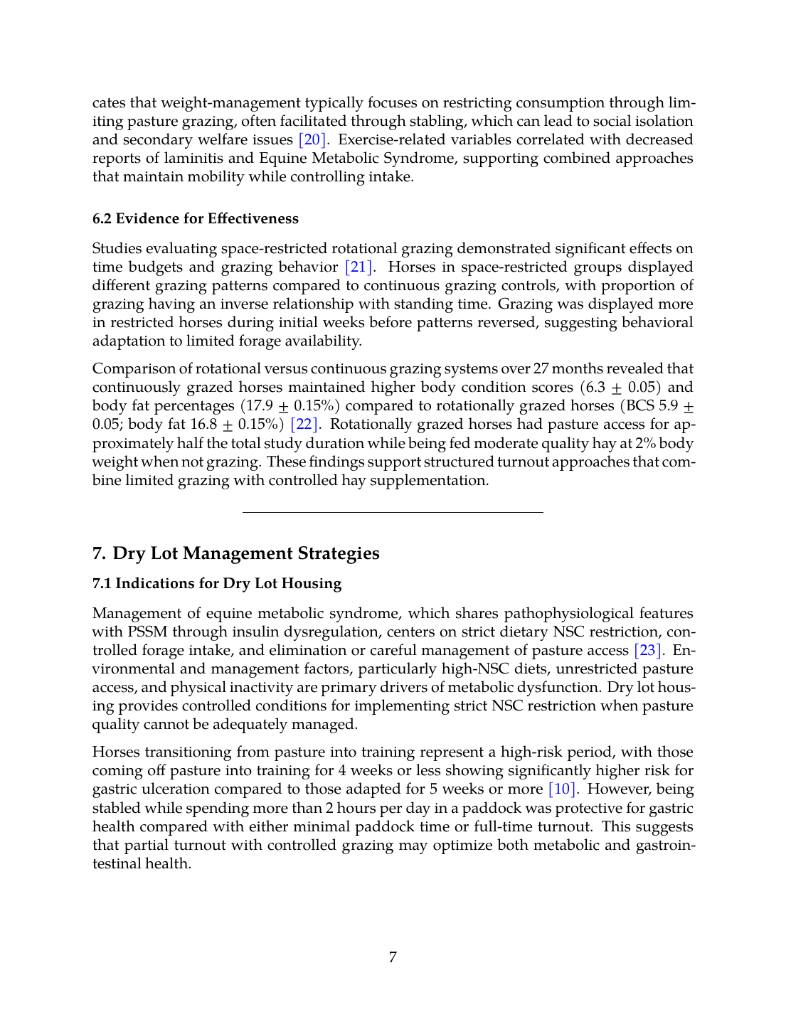 - Rotational grazing systems support better weight management and pasture quality compared to continuous grazing while maintaining welfare benefits of turnout [22].