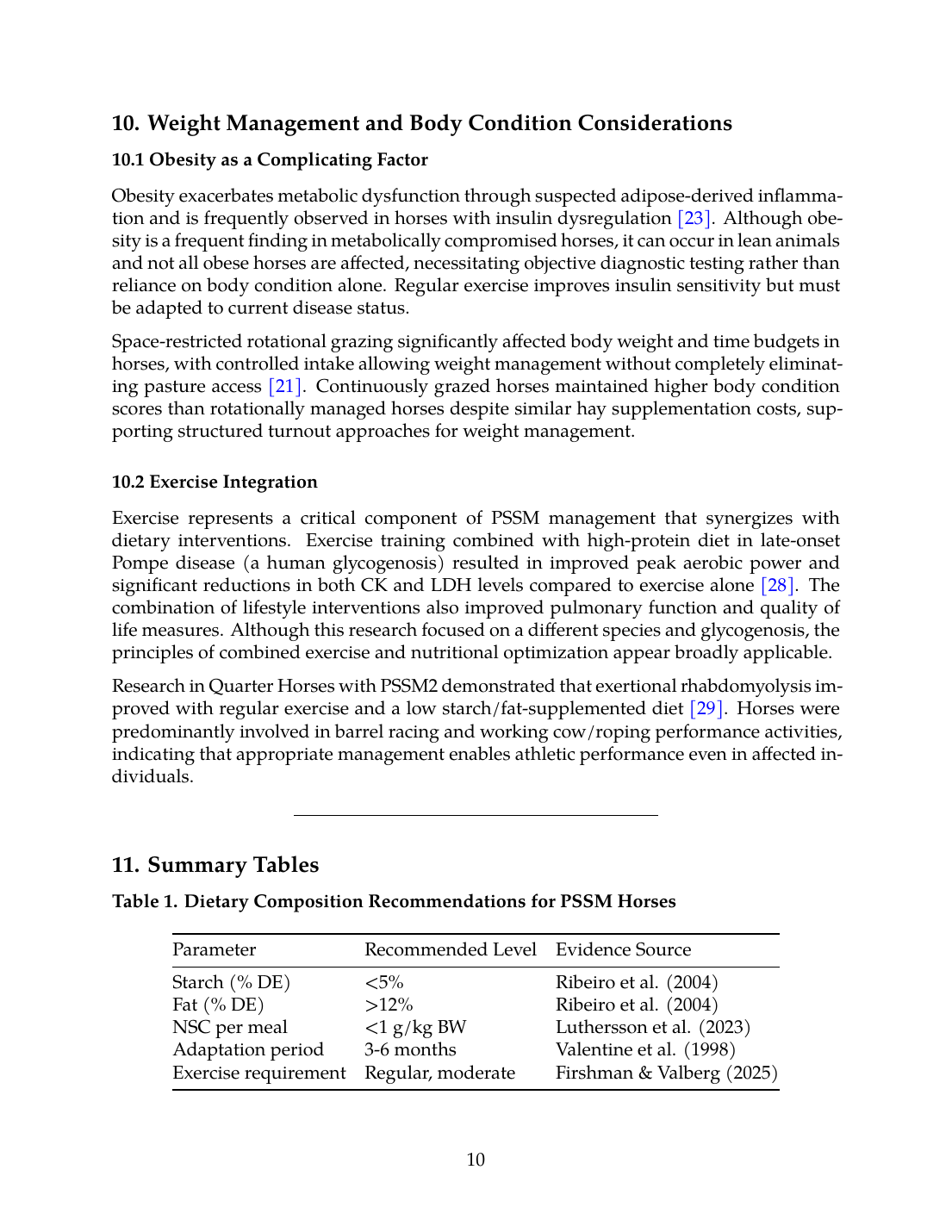 Table 1. Dietary Composition Recommendations for PSSM Horses
