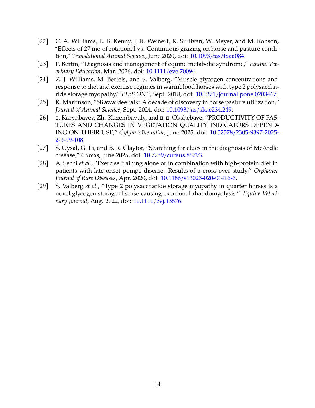 - K. Martinson, “58 Awardee Talk: A decade of discovery in horse pasture utilization,” Journal of Animal Science, Sep. 2024. doi: 10.1093/jas/skae234.249. View source