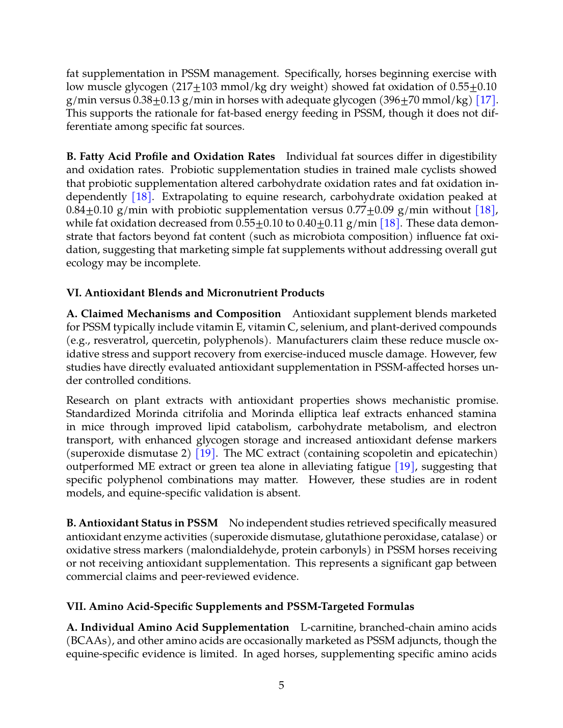 - Antioxidant blends: plant extract studies in non-equine models [19] without PSSM validation