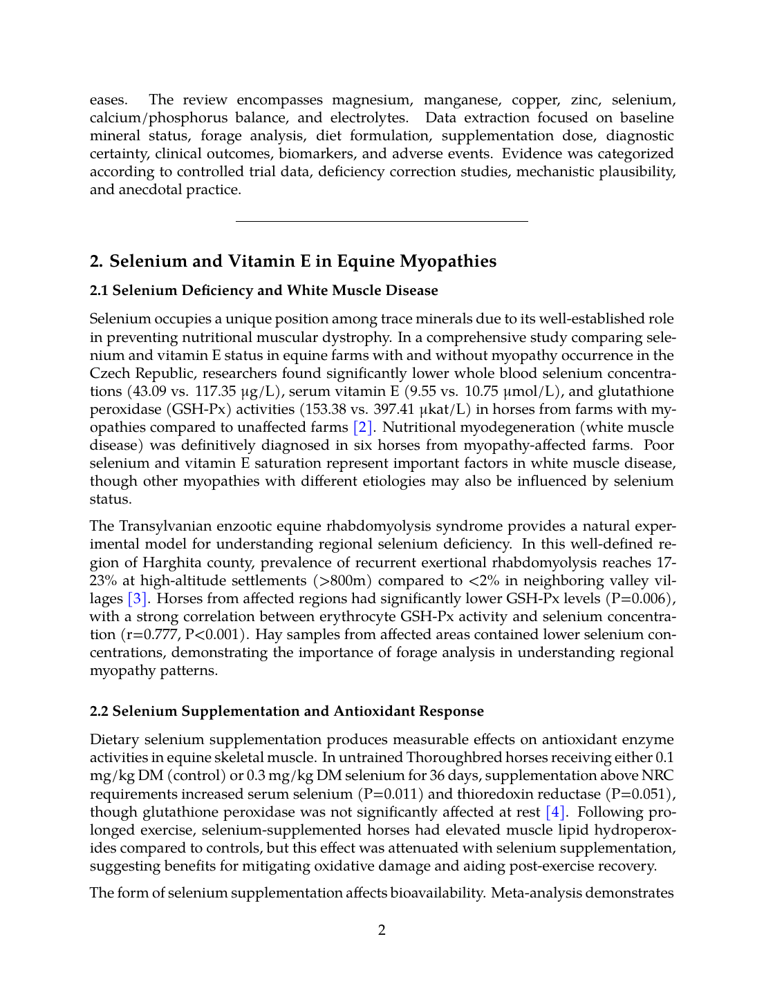 2. Selenium and Vitamin E in Equine Myopathies