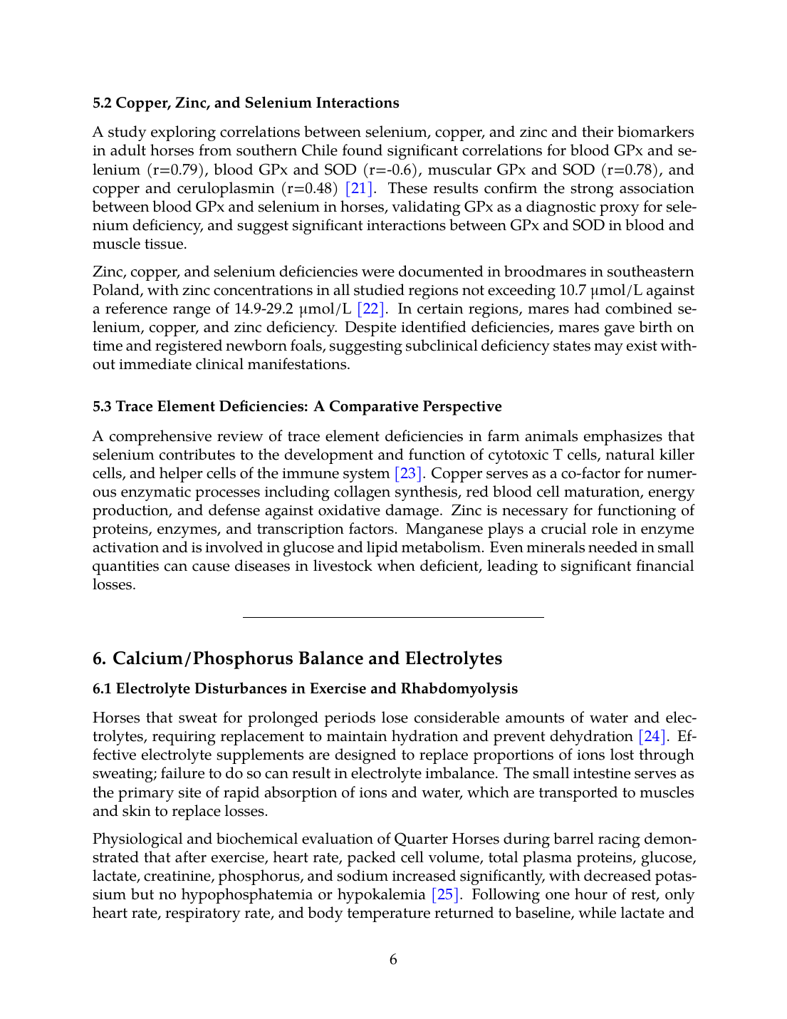 Priority 4 - Copper/Zinc: The interactions between copper, zinc, and selenium documented in equine muscle tissue [21] suggest these minerals may have synergistic or antagonistic effects on antioxidant capacity that require systematic investigation.