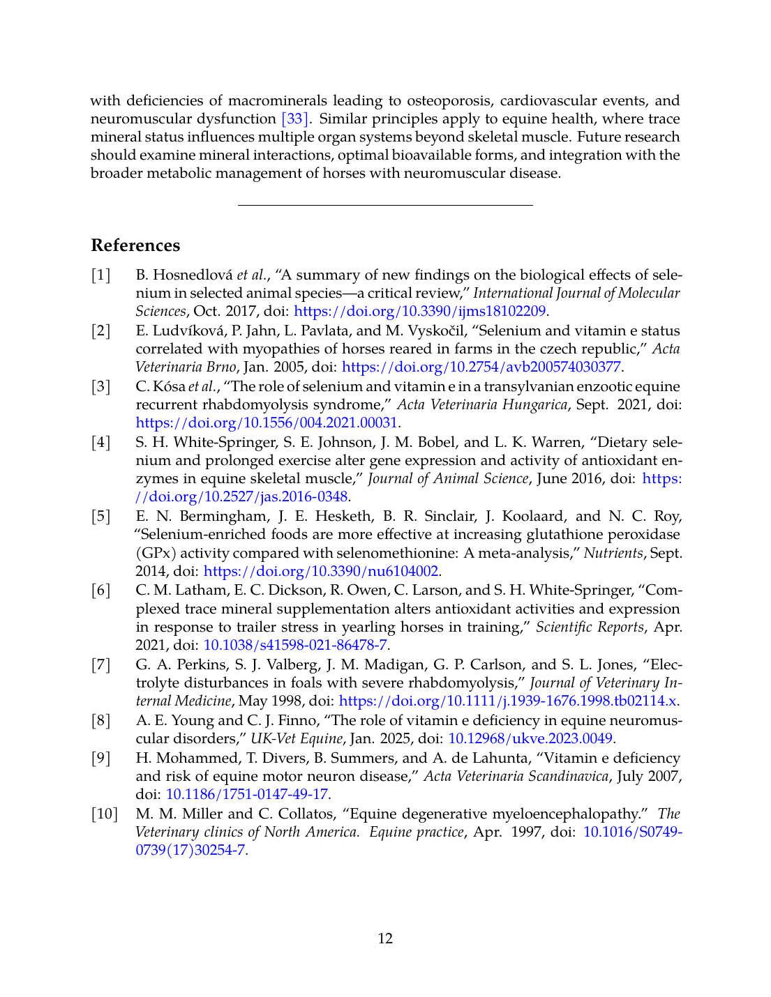 - C. Kósa, K. Nagy, O. Szenci, B. Vincze, E. Andrásofszky, R. Szép, Á. Keresztesi, M. Mircean, M. Taulescu, and O. Kutasi, “The role of selenium and vitamin E in a Transylvanian enzootic equine recurrent rhabdomyolysis syndrome,” Acta Veterinaria Hungarica, Sep. 2021. doi: 10.1556/004.2021.00031. View source