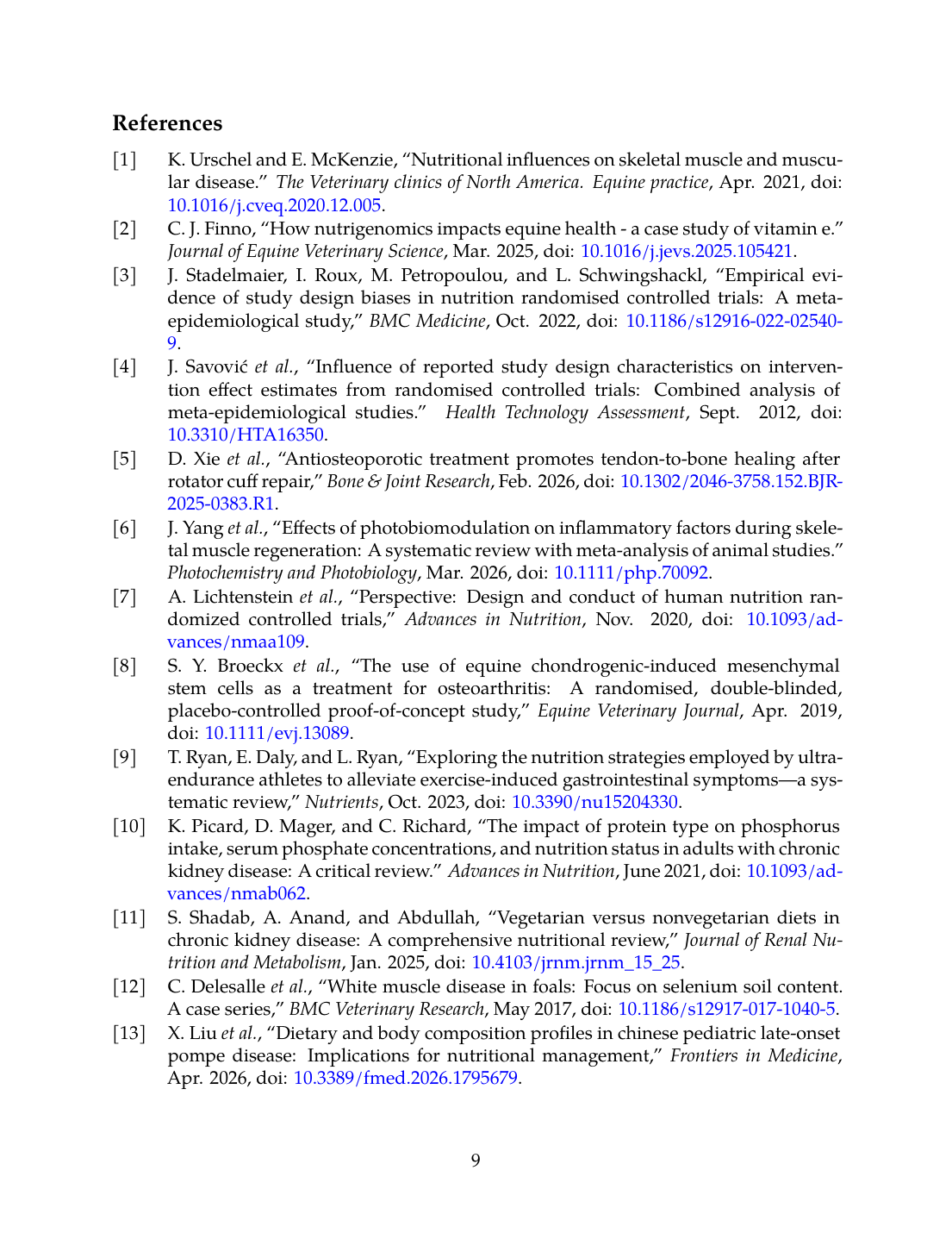 2. C. J. Finno, “How Nutrigenomics Impacts Equine Health - A Case Study of Vitamin E.,” Journal of Equine Veterinary Science, Mar. 2025. doi: 10.1016/j.jevs.2025.105421. View source