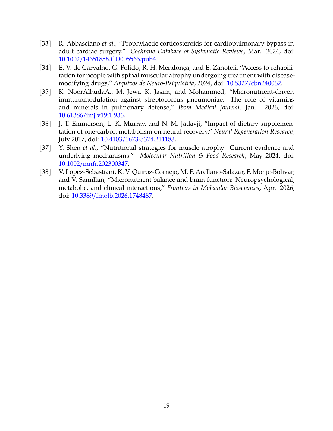 - V. López-Sebastiani, K. V. Quiroz-Cornejo, M. P. Arellano-Salazar, F. Monje-Bolivar, and V. Samillan, “Micronutrient balance and brain function: neuropsychological, metabolic, and clinical interactions,” Frontiers in Molecular Biosciences, Apr. 2026. doi: 10.3389/fmolb.2026.1748487. View source