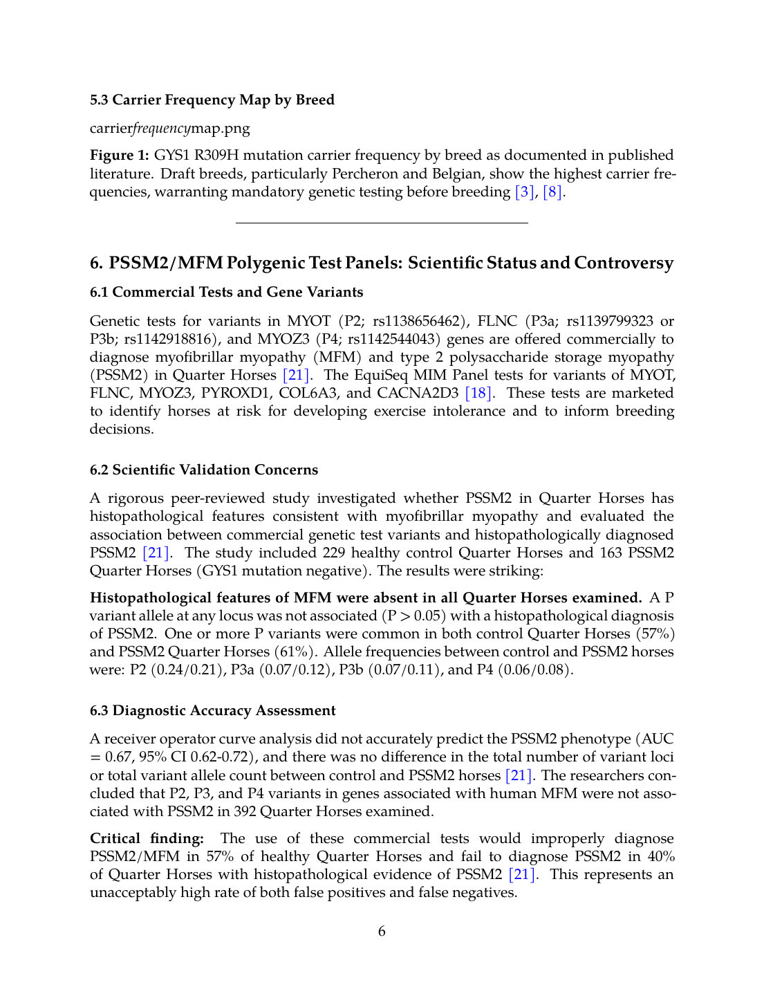 Critical finding: The use of these commercial tests would improperly diagnose PSSM2/MFM in 57% of healthy Quarter Horses and fail to diagnose PSSM2 in 40% of Quarter Horses with histopathological evidence of PSSM2 [21]. This represents an unacceptably high rate of both false positives and false negatives.