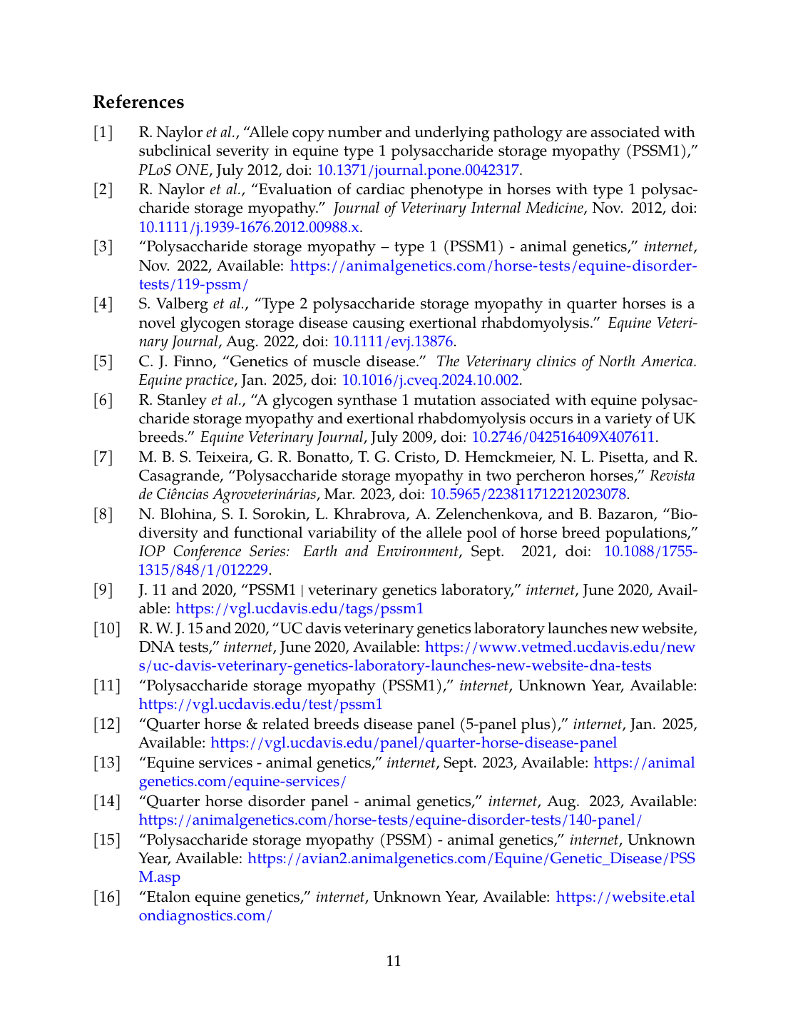 9. J. 11 and 2020, “PSSM1 | Veterinary Genetics Laboratory,” internet, Jun. 2020. Available online