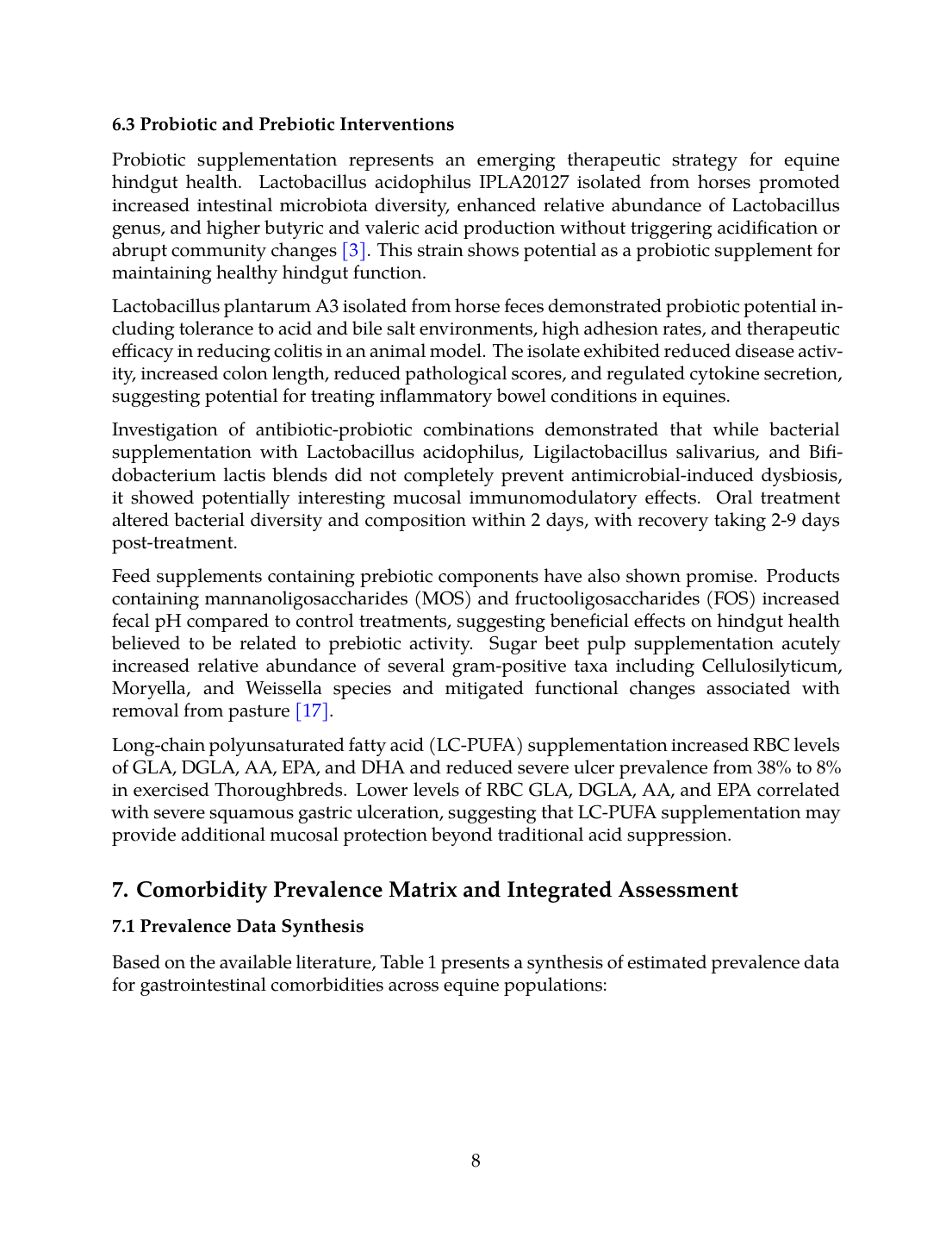 Based on the available literature, Table 1 presents a synthesis of estimated prevalence data for gastrointestinal comorbidities across equine populations: